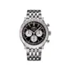 A nostalgic nod to the past, this Navitimer proudly displays the AOPA wings at 12 o’clock – just like the early models. The black dial features baton hour markers and silver-toned hands, complemented by a trio of contrasting chronograph sub-dials for optimal legibility and style.