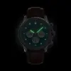 The dial layout remains classic yet refined, featuring three contrasting silver-toned chronograph counters and baton hour markers that enhance legibility and visual balance.