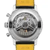 The blue dial offers perfect contrast and clarity, accentuated by stainless steel baton markers and a discreet date window. The trio of chronograph counters and vintage AOPA wings logo create a balanced layout rich with aviation legacy.