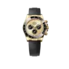 The Daytona Ref. 126518LN-0012 is a bold statement of performance and prestige. The striking contrast between its golden dial and black ceramic bezel creates instant visual impact, while the Oysterflex bracelet ensures both comfort and resilience. Powered by the advanced Caliber 4131, it delivers robust chronograph performance with approximately 72 hours of autonomy. A true blend of sportiness and elegance, equally suited for racing, leisure, or formal occasions.