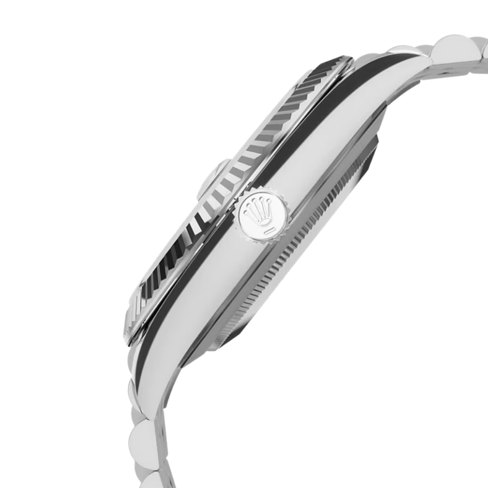 The Rolex Datejust Ref. M126334-0018 is a refined interpretation of classic elegance within a versatile wristwatch. Presented in a 41 mm case design, this model pairs Oystersteel with white-gold tone accents, highlighted by a distinctive blue dial with sunray finish and luminous hour markers. The fluted bezel adds timeless sophistication, while the Oyster bracelet combines sportiness and luxury, ensuring both comfort and presence on the wrist. Recognized as a symbol of versatility, the Datejust can transition seamlessly between formal occasions and daily wear.