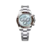 The Rolex Cosmograph Daytona Ref. 126506‑0001, introduced to celebrate the 60th anniversary of the iconic Daytona collection, is a true elegance-on-wheels. Crafted entirely from 950 platinum, this model features a distinctive ice-blue dial paired with chestnut brown Cerachrom bezel, creating a rare and captivating aesthetic. It combines Rolex’s heritage in motorsport timing with the highest luxury watchmaking standards.