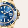 This Submariner Date is crafted from solid 18k yellow gold, giving it a distinctive blend of luxury and durability. The 41 mm Oyster case is finished with a mix of polished and brushed surfaces, enhancing its sporty yet refined character. The unidirectional rotatable bezel features a royal blue Cerachrom insert in ceramic with gold-coated numerals and graduations, designed for precise and reliable dive-time measurement.